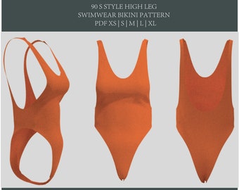 Swimwear Sewing Pattern 90 S Style High Leg One Piece Etsy Israel